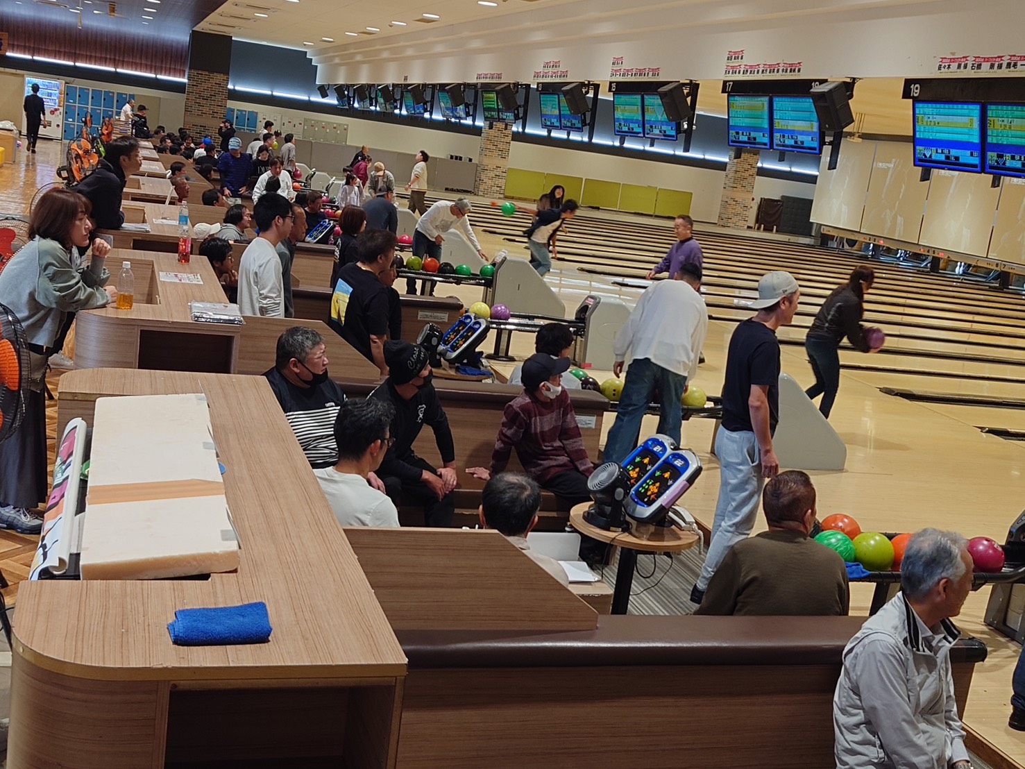 当日は、日頃は道路上で地域を支える皆様の、熱気あふれる真剣なプレーが繰り広げられました。ストライクやスペアが出るたびに歓声が上がり、会場全体が活気に包まれました。